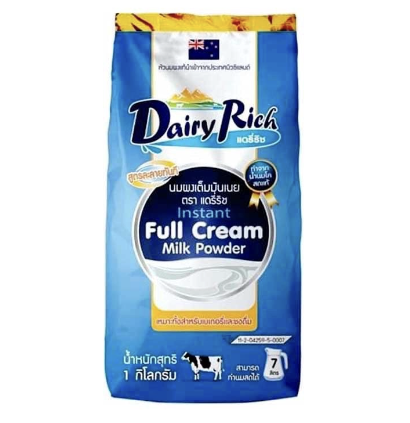 💡 นมผงคือ นมสดที่ระเหยน้ำออกจนเกือบหมดจนกลายเป็นผง สามารถใช้ผสมในส่วนผสมแห้งได้ทันทีโดยไม่ต้องละลายน้ำก่อน
